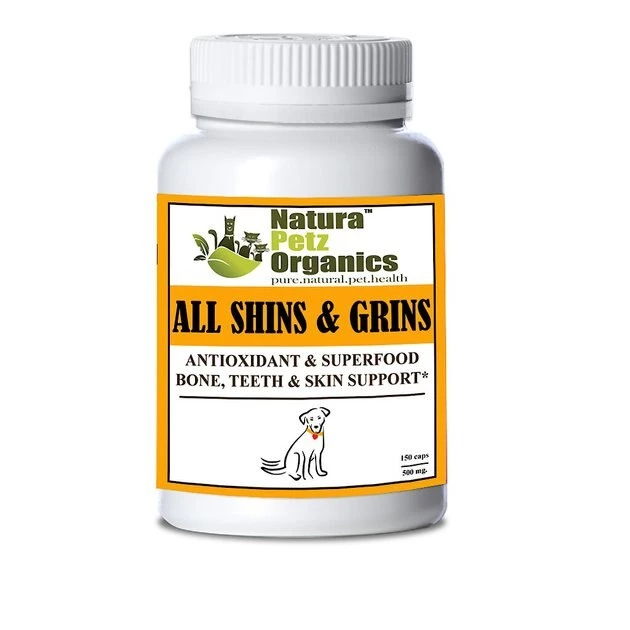 Guide your furry friend to wellness with the antioxidants and adaptogens found in Natura Petz Organics All Shins & Grins Dog Supplement. It aids your pet’s body by stimulating collagen production—which in turn builds bone mass, bone strength, cartilage, joints, muscles, connective tissues, and blood vessels. Kick nutrient absorption into gear while supporting essential gut health and the immune system.
