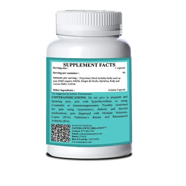 Proprietary Blend Includes Herbs Such As Non-Gmo Organic Alfalfa, Sangre De Grado, Spirulina, Kelp And Lemon Balm, Achiote. Turkey Flavored Capsules
