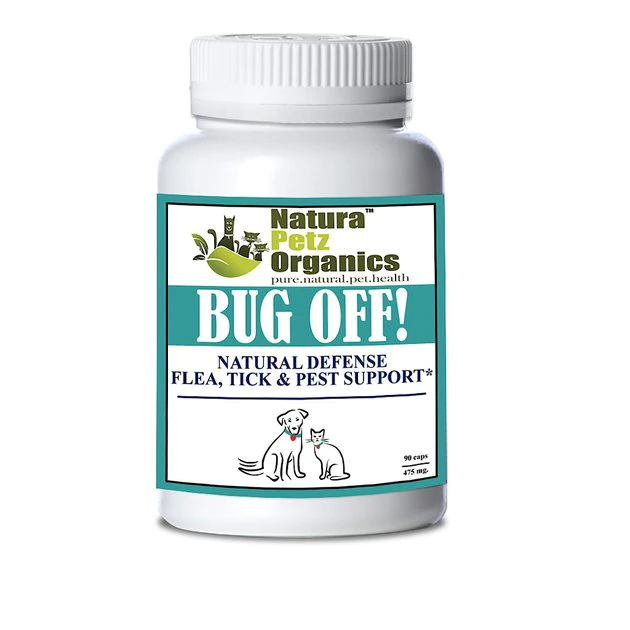 Give your pet the power to repel insects naturally with Natura Petz Organics Bug Off Natural Defense Dog & Cat Supplement. This tasty turkey-flavored supplement is formulated to help balance your pet’s pH levels to naturally repel fleas, ticks, mosquitoes, flies and bugs. It contains a proprietary blend of herbs including organic alfalfa, sangre de grado, spirulina, kelp, lemon balm and achiote. Crafted without any corn, wheat, soy or GMO ingredients in a convenient capsule form, Bug Off may function as a broad spectrum insecticide, support allergic responses and heal infections.