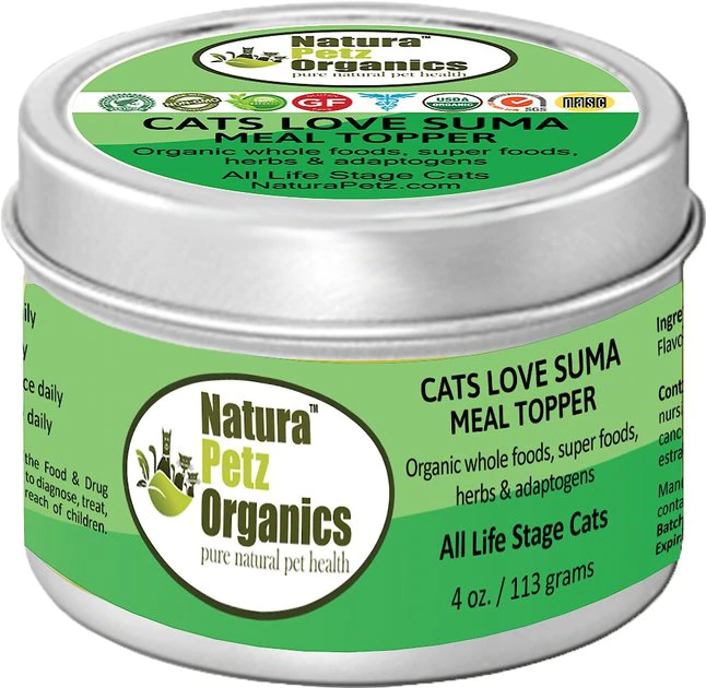 Your kitty will paw-sitively love the flavor and feeling of Natura Petz Organics Cats Love Suma Cat Food Topper. This tasty turkey-flavored supplement is formulated to help provide broad-based health support for your cat. It contains a proprietary blend of key ingredients including suma and sacha inchi. Crafted without any corn, wheat, soy or GMO ingredients in a convenient powder form, Cats Love Suma may help boost immunity, enhance energy and protect against cellular mutations.