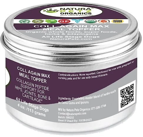 Most humans know what collagen is and may use it for themselves–but have you ever thought about using it as a supplement for your dog? Natura Petz Organics Coll-Again Dog Supplement may stimulate collagen production to help build bone mass, bone strength, and bone mineral density. This formulation potentially supports cartilage and joints, muscles, connective tissues, blood vessels, teeth and eye tissue health.