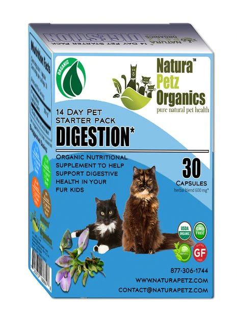 Help optimize your kitty’s digestive health with Natura Petz Organics Digestion Starter Pack Cat Supplement. This tasty turkey-flavored supplement for cats is formulated to help support digestion and a healthy digestive tract. It contains a blend of prebiotics, probiotics, adaptogens, antioxidants and plant steroids. Crafted without any corn, wheat, soy or GMO ingredients in a convenient capsule form, the Digestion Starter Pack may help soothe upset stomachs, limit stomach inflammation and correct bladder, kidney and urinary tract infections.