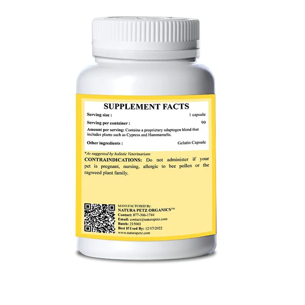Gelatin Capsules, Cypress, Hammamelis, Cats Claw Extract. Turkey Flavored Capsules.