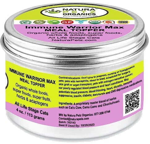 Natura Petz Organics Immune Warrior Cat Supplement contains powerful plant chemistry that may help monitor inflammatory conditions and auto-immune diseases in your cat’s body. This plant-based supplement supports a robust immune system, and helps defend against diseases— acting as a natural anti-inflammatory, steroid, antibiotic and anti-allergen. Prebiotics, probiotics and digestive enzymes offer support against allergens, pathogens and antigens. Meanwhile, smooth muscle relaxant properties may ease your kitty’s gastrointestinal troubles—including ulcers, ulcerative colitis, leaky gut issues and bowel irregularities. Plus, Immune Warrior may even restrict blood and nutrient supply to irregular tissues and growths associated with lipomas, tumors, lyme disease and digestive disorders. Talk to your vet and see if Joint Revival is the purr-fect choice for your kitty!