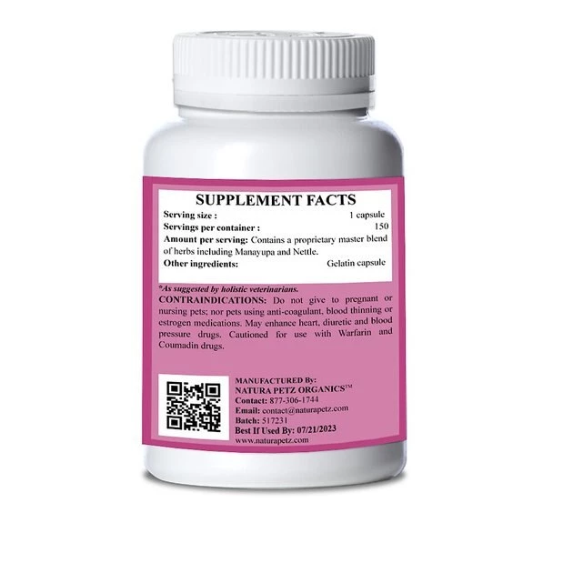 Contraindicated with aspirin, anti-coagulant, blood thinning and estrogen medications (Tamoxifen, Nolvadex.) and likely contraindicated for pregnant and nursing pets, and pets using diuretics. Might decrease effectiveness of Cipro. Do not use longer than 30 days without use of a pet friendly probiotic.