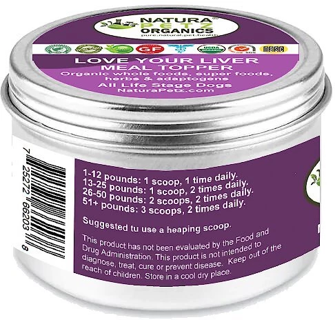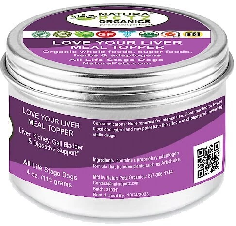 Natura Petz Organics Love Your Liver Dog Supplement provides plant-based support for your dog’s liver, pancreas and gallbladder. It contains antioxidants, milk thistle, flavonoids, enzymes and natural plant chemicals to aid in proper digestion and provide relief from various digestive disorders. Love Your Liver also helps stimulate liver cell regeneration during duress—or in the beginning stages of liver failure—and may also help regulate high liver enzyme levels. Use it to naturally detoxify your dog’s body following chemotherapy, the use of antibiotic, heartworm or steroid medications or everyday toxin exposure. Talk to your vet and see if Love Your Liver is the paw-fect choice for your pooch!