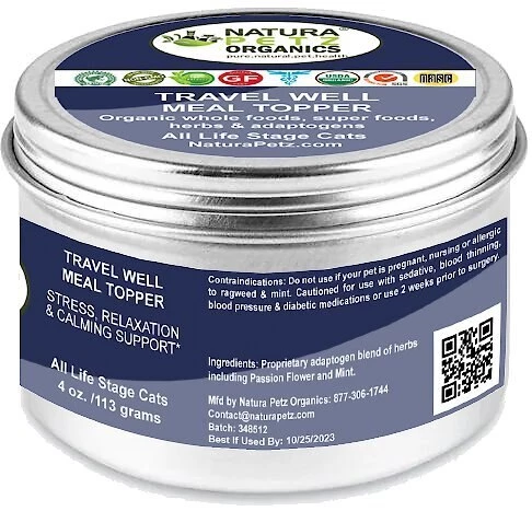 - Travel Well’s calming, sedative and nervine effects help relax your cat’s central nervous system—including her autonomic, sympathetic, parasympathetic, adrenal, cardiovascular, digestive, excretory and respiratory systems—plus it offers a gentle-yet-effective alternative to prescribed anxiety medications.