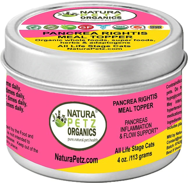 Natura Petz Organics Pancrea Rightis Homeopathic Medicine for Pancreatitis for Cats offers natural, plant-based support for healthy pancreatic function. This broad-spectrum tonic may help detoxify, strengthen, regulate and tone your cat’s pancreas, liver, kidneys and gallbladder. It contains ellagic acids to help inhibit nerve damage related to the pancreas, and plant-derived chemicals that can help prevent necrotic skin conditions caused by severe pancreatitis. Plus, Pancrea Rightis may enhance the production and use of insulin and glucagon—and can even aid in digestion after pancreatic damage. Talk to your vet and see if Pancrea Rightis is the purr-fect choice for your kitty!
