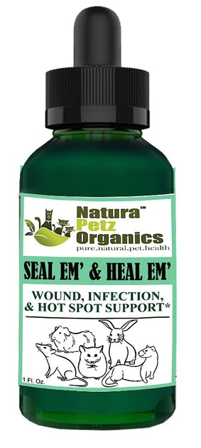 Help your small sidekicks snap back with Natura Petz Organics Seal Em & Heal Em Tincture Bird & Small Animal Supplement. This liquid supplement for birds and small animals is formulated to help seal and heal all types of wounds and infections. It contains a blend of potent proanthocyanins, antioxidants, saponins, alkaloids, lignans, polyphenolic compounds, diterpenes and more. Crafted without any corn, wheat, soy or GMO ingredients in a convenient liquid form, Seal Em and & Heal Em may help limit inflammation, stop itching and heal surgical incisions.