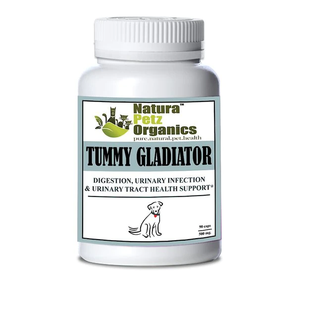Help strengthen your sidekick’s stomach with Natura Petz Organics Tummy Gladiator Dog Supplement. This tasty turkey-flavored supplement for dogs is formulated to help soothe upset stomachs and support a healthy digestive tract. It contains a blend of antioxidants, prebiotics, probiotics, digestive enzymes, FOS, inulin, fiber, steroids, soyasaponins, flavonoids, alkaloids, amino acids, ellagic acids, tryptophan, hydroquinones, tannins, essential oils, saponins, proteins, carotenoids and more. Crafted without any corn, wheat, soy or GMO ingredients in a convenient capsule form, Tummy Gladiator may help fight stomach infection, support lymphatic function and promote balanced immune health.