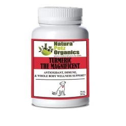 Help your buddy feel his best with Natura Petz Organics Turmeric The Magnificent Dog Supplement. This tasty turkey-flavored supplement for dogs is formulated to help limit excessive inflammation throughout your pet’s body. It contains a blend of curcuminoids, essential oils, protein, vitamins A, C, E and K, calcium, copper, iron, magnesium, manganese, phosphorous, zinc and more. Crafted without any corn, wheat, soy or GMO ingredients in a convenient capsule form, Turmeric The Magnificent may help inhibit free radical damage, cool inflammatory response and limit allergen triggers.