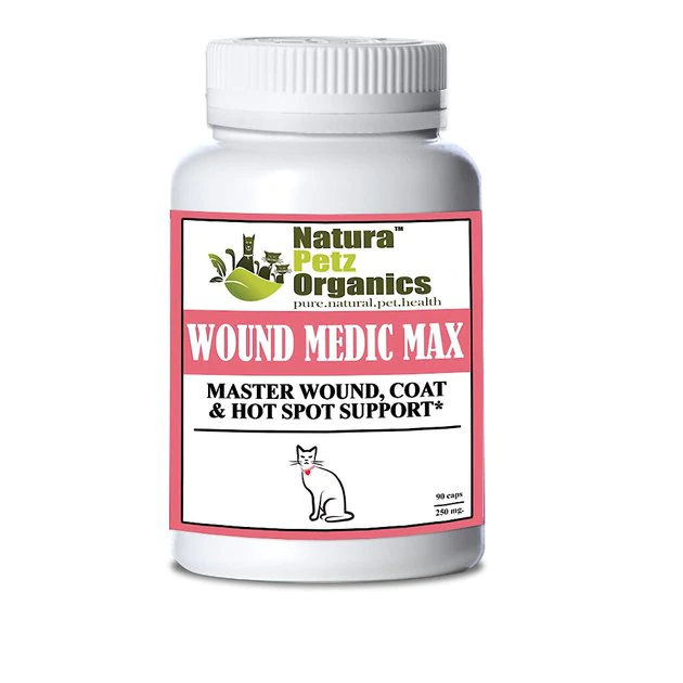 The Natura Petz Organics Wound Medic Max Cat Supplement can be used in multiple ways to support your kitty as he deals with wounds, abscesses, skin sores and other issues. You can apply it topically as a poultice to help soothe painful wounds. You can also feed this supplement to your cat to help support his health and wound recovery from the inside-out. The ingredients help to protect and nourish the skin and coat, and they may stimulate collagen production and cellular repair. It’s ideal for all sorts of issues—including skin fungus, insect bites, bruises, strains, sprains, inflammation, sores, rashes and itching. These capsules may help to speed up healing and get your furbaby feeling paw-some again.
